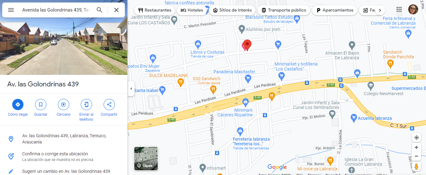 | Nuestros clientes son importantes para nosotros, por lo que facilitamos un mapa donde ubicarnos. La dirección es Av. Las Golondrinas #0439, Barrio Los Castaños, Labranza |